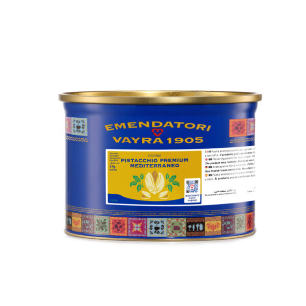 Pure Pistachio paste made from a blend of best pistachio from Mediterranean area. Contains 0,35% of natural chlorophyll that give classic natural dark green colour to pistachio.